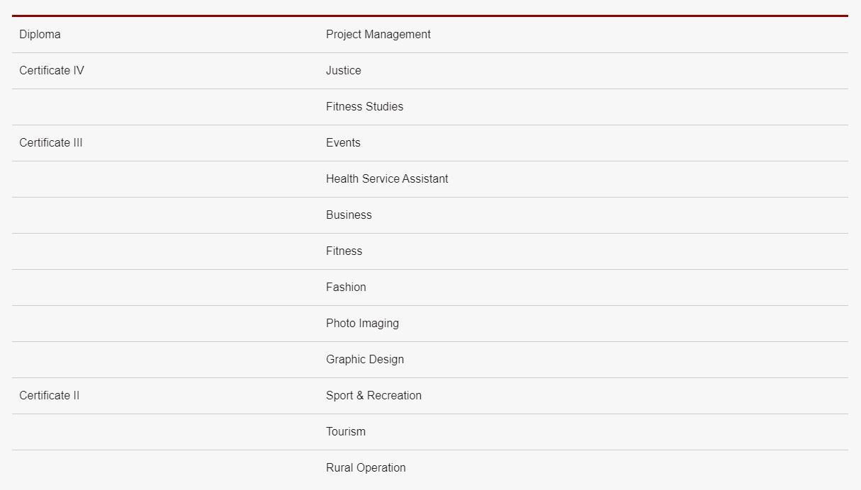 There are a range of VET subjects offered at St Peters (run through external providers). In 2019, 26 Year 12 students completed one or more of these at school. These courses included: