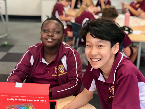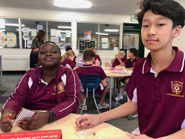 Two boys from Year 5 (Junior High) have become the first St Peters students to use a 'pixel kit' to code a digital animation — all as part of their recent Solar System unit. While some students in the class created models or videos as their projects, Josh and Steven took up the challenge from their teacher Ms Hannan to unbox and teach themselves the KANO Pixel Kit. It’s a small computer board featuring 128 individual and programmable LED lights capable of displaying up to 16 million colours.