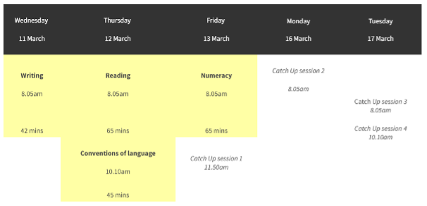 The NAPLAN testing window opens on 11 March, and we will complete the domains in the sequence below: