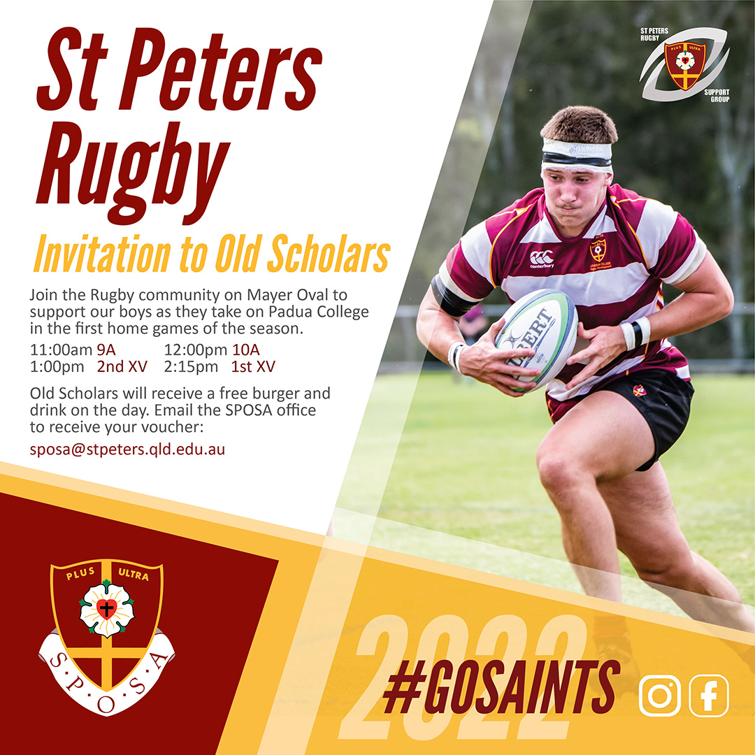 This coming Saturday our St Peters Rugby teams will also compete in rugby games against Padua College. Our 1st XV, 2nd XV, 10A and 9A teams will play ‘home’ at St Peters. Our Junior teams will play ‘away’ at Padua Playing Fields, Elliott Road, Banyo. We request everyone to please check the St Peters App for game times and details. Please also check the App for any cancellations.