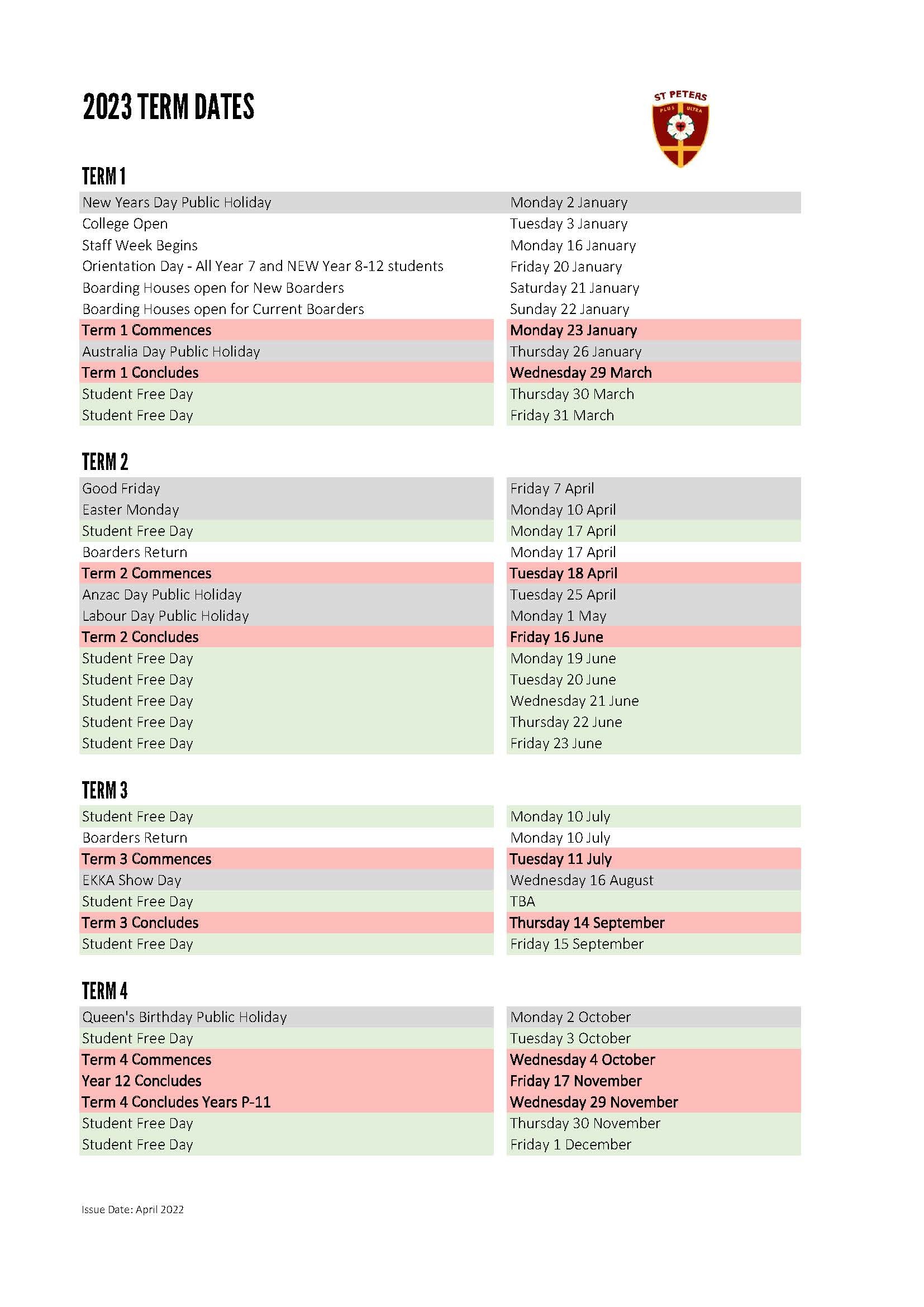 For further information, please contact the Admissions Office via admissions@stpeters.qld.edu.au or phone 3377 6222.