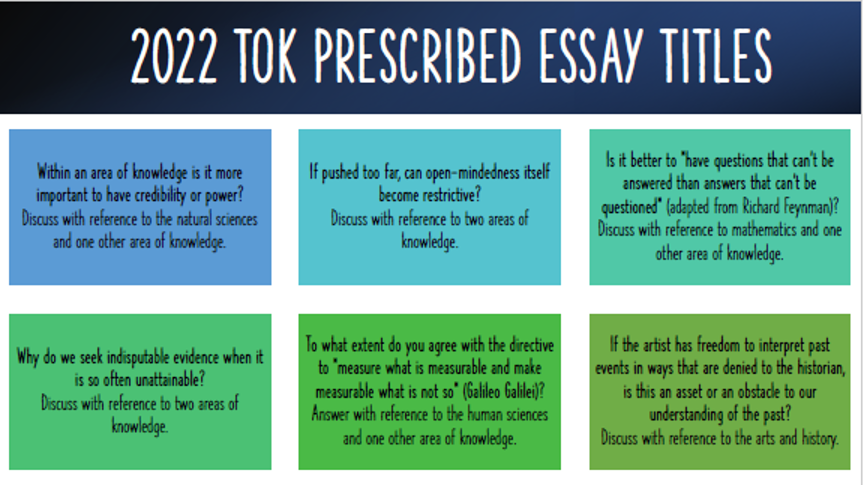 In Year 12, TOK students have to write a 1,600 word essay in response to a prescribed titles. The 2022 prescribed titles were released at the end of Term 1. Students this year are writing their essays on one of the following titles: