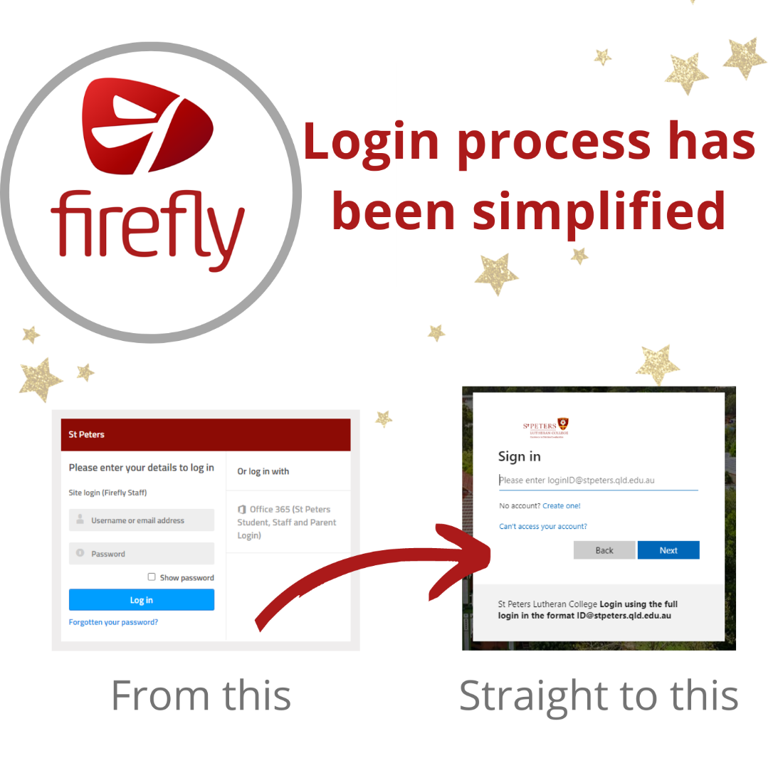 The login process for Firefly has been updated and now aligns with our other systems. The SAML option has been removed and the Microsoft 365 login has been set as the default. This means that when you click on a link to a Firefly page it will automatically use your logged in St Peters Microsoft account or prompt you for the login for this system.