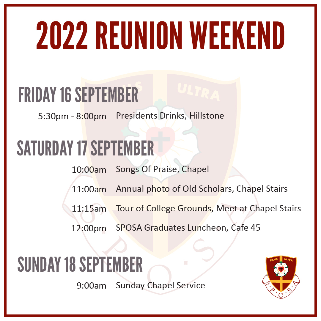 It's time again to share stories and celebrate our wonderful years at St Peters Lutheran College. We would especially like to invite those current parents who are Old Scholars to a gathering at Hillstone St Lucia on Friday 16 September 5.30pm.