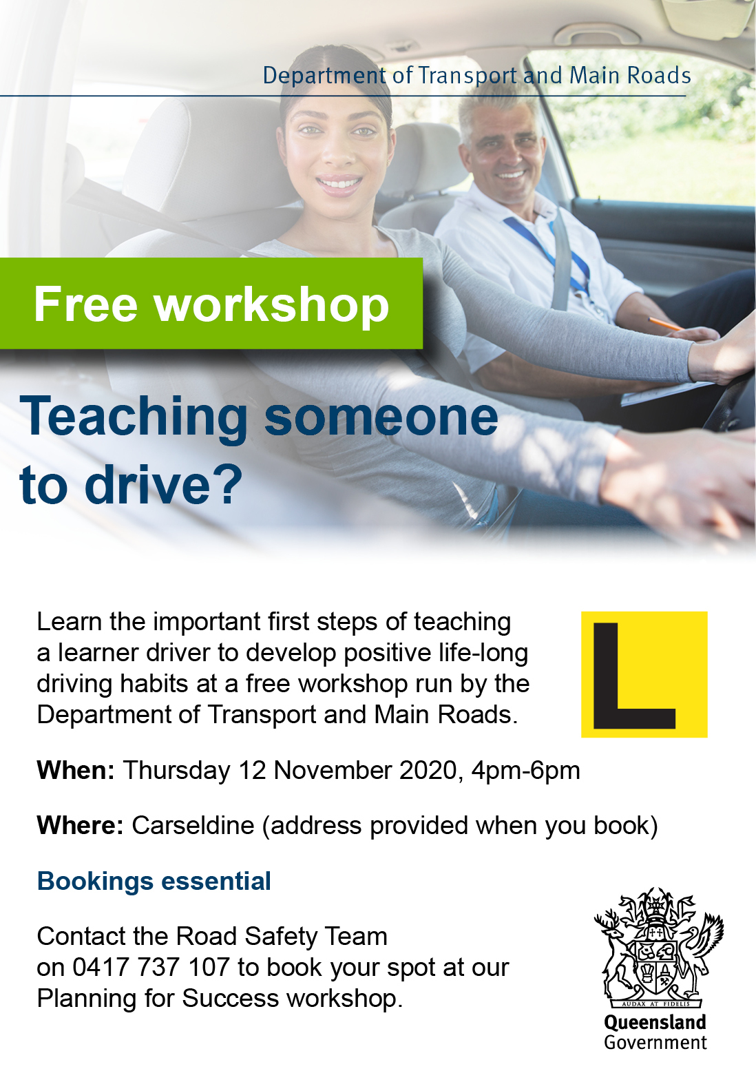 If you’re interested in learning the important first steps in how to teach your learner driver and ensure they are safe and proficient drivers, book into the next workshop (details provided below) or contact Kerrie Doherty for more information on 0417 737 107.
